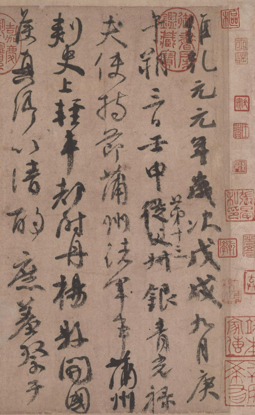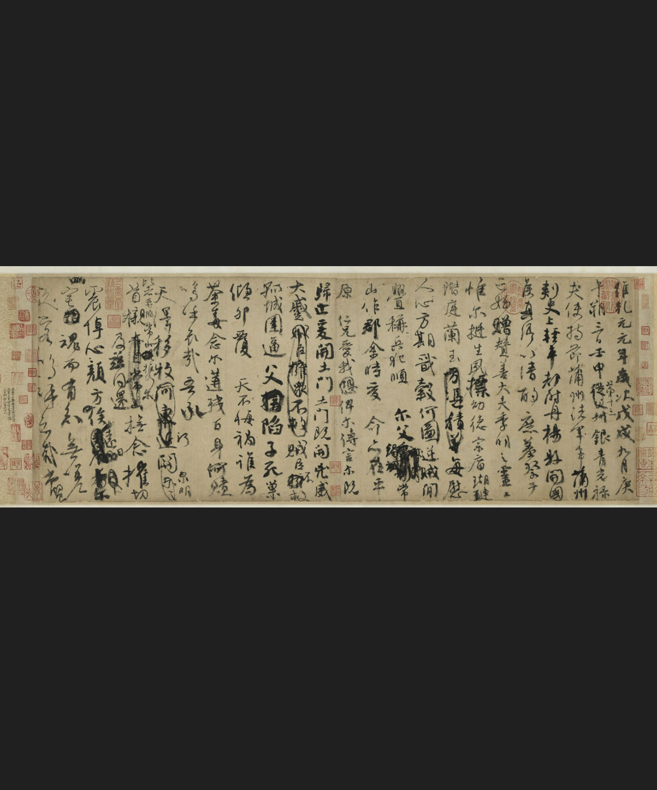 This manuscript is a draft Yan Zhenqing composed in memory of his nephew, Ji Ming, who tragically died during the An Lushan Rebellion. Written in a state of profound grief and indignation, the calligraphy reflects Yan's turbulent emotions. As his mind was too agitated to remain calm, the characters fluctuate with his mood, resulting in numerous corrections and spontaneous brushstrokes throughout the text. Unconcerned with the refinement of technique or the perfection of form, the writing is a raw and heartfelt outpouring of his spirit and years of practiced skill. This manuscript is not only a significant historical document but also one of the most valuable artistic treasures in Chinese calligraphy, embodying both emotional depth and technical mastery.