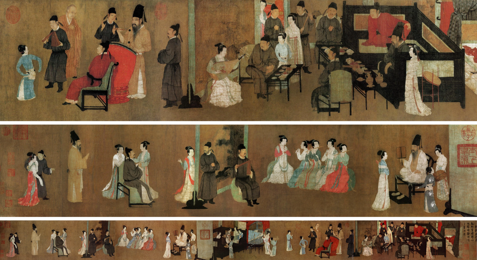 Gu Hongzhong's "The Night Revels of Han Xizai" - A High-Quality Reproduction of an Ancient Chinese Masterpiece